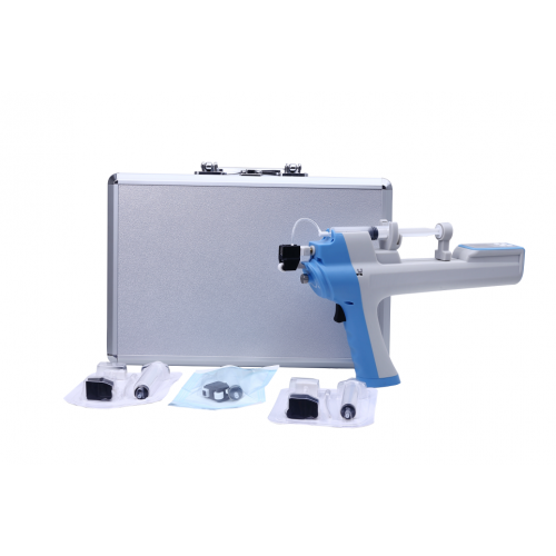 A diferencia de los dispositivos de inyección promedio, esta máquina puede inyectar con precisión el medicamento en la piel más profunda, mediante el uso de un dispositivo de prensa de sonido, haciendo que la piel se levante un poco para mantener la tensión, luego, inyecte en la profundidad exacta con la máquina. El ajuste de la velocidad de inyección se puede hacer con el botón detrás del equipo. Además, la aguja se libera bajo presión antes de sacarla, y con esto casi no causa ninguna pérdida de medicamento.
